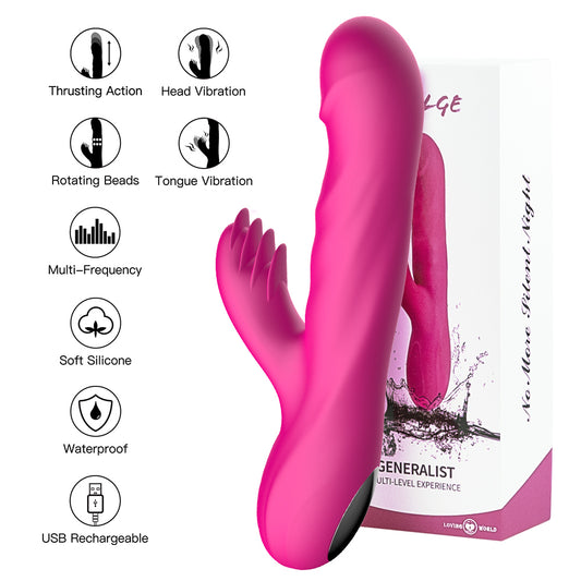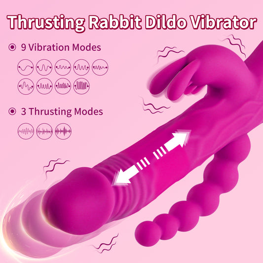 Rabbit Thrusting Dildo Vibrator with Anal Beads